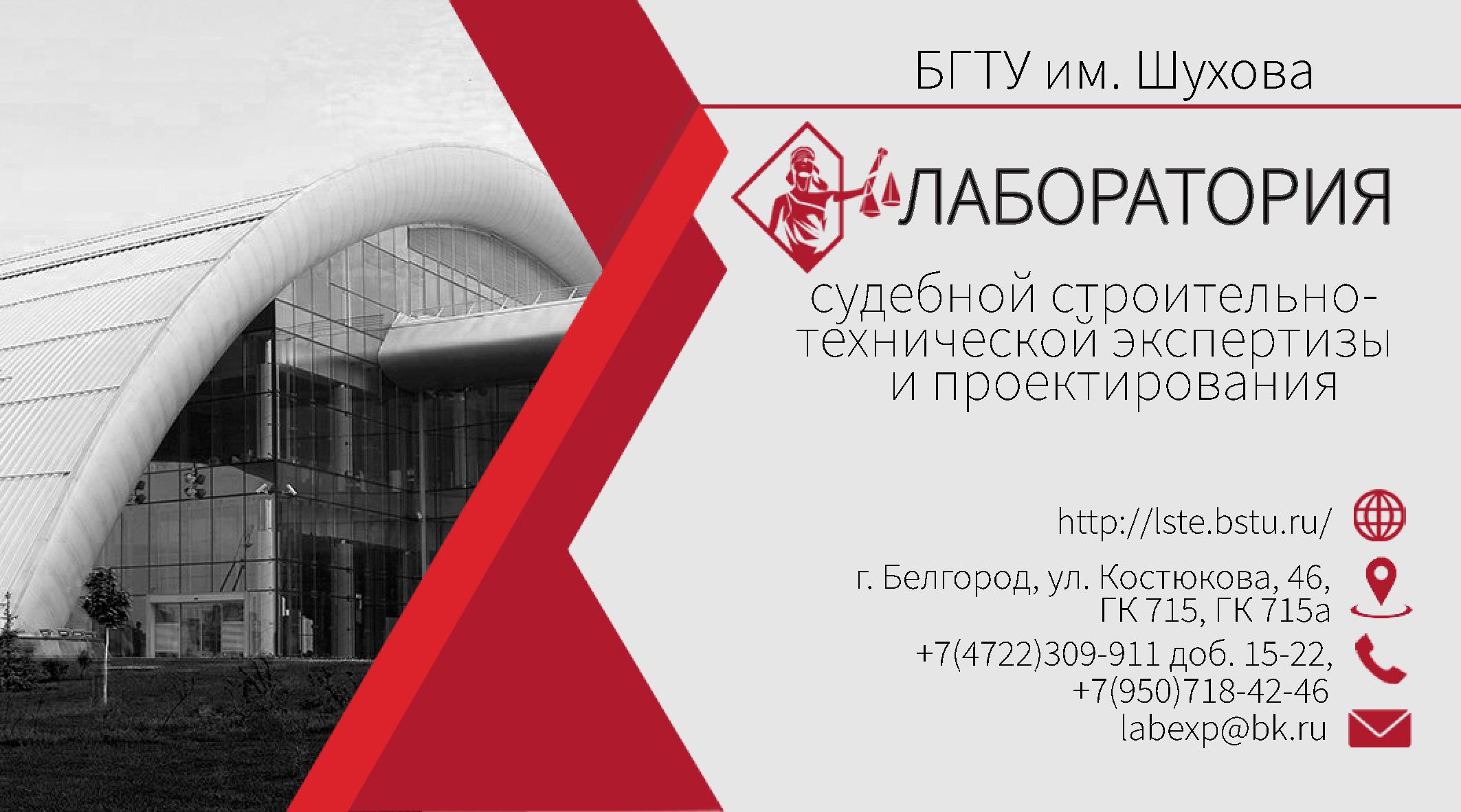 Почтовый адрес: Россия, 308012, г. Белгород, ул. Костюкова 46, БГТУ им. В. Г. Шухова